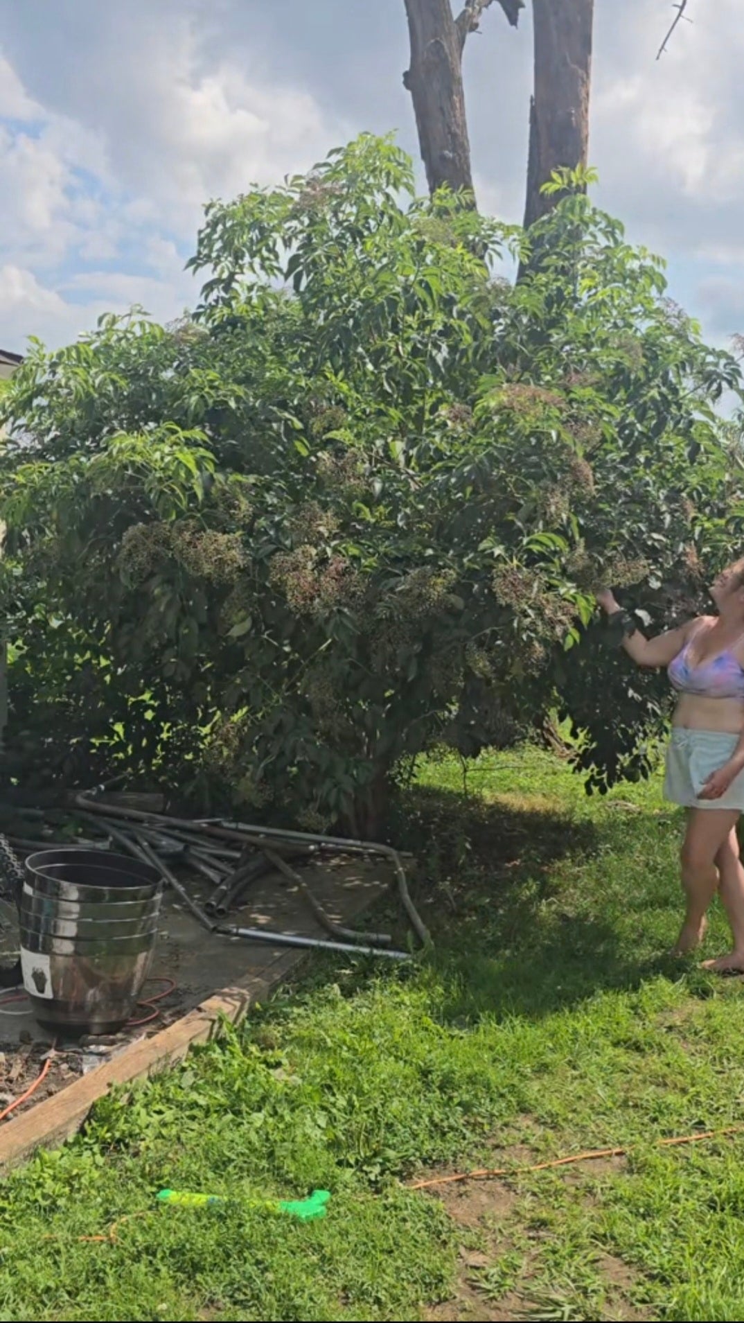 In 2020, I got an elderberry bush start from a friend's established bush. It grew and grew into the beauty you see in the pictures. I started making my own elderberry syrup in 2017, then using my very own elderberries in a single batch by the end of 2020. Today, my ONE bush has supplied all my elder elixir I have produced in 2024!🍇
